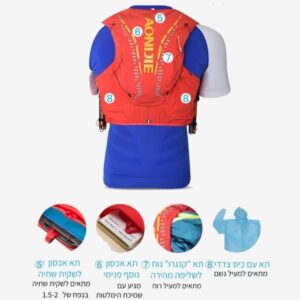 וסט ריצה AONIJIE למרחקים קצרים בנפח ליטר וחצי, עם כיסוי גשם, כיסי צד לבקבוקים חטיפים ופיצ’רים נוספים!