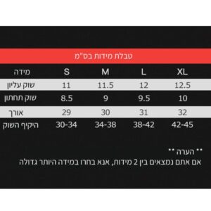 (אם היקף השוק שלך הוא סביב ערך קריטי של גודל מסוים, מומלץ לבחור מידה גדולה יותר, למשל, אם היקף השוק שלך הוא 34 ס”מ, מומלץ קוד M